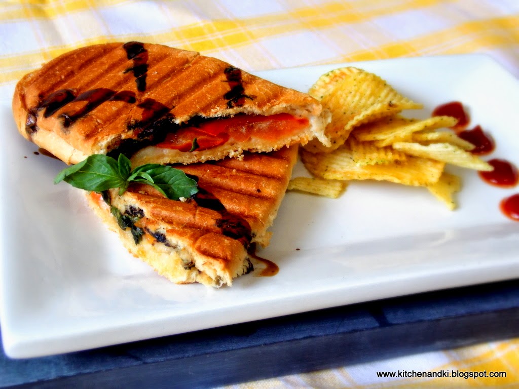And this Panini, combines all those flavours- oooohhhh yeah (read that in 'Duffman' style). Over n above those flavours, take this to a whole other level with garlic infused balsamic reduction. The sweetness of the Balsamic echoing the tart sweetness of the ripened tomatoes and the very subtle garlic flavour adding a whole other dimension to the otherwise simple Panini....ohhh baby, come to mama!