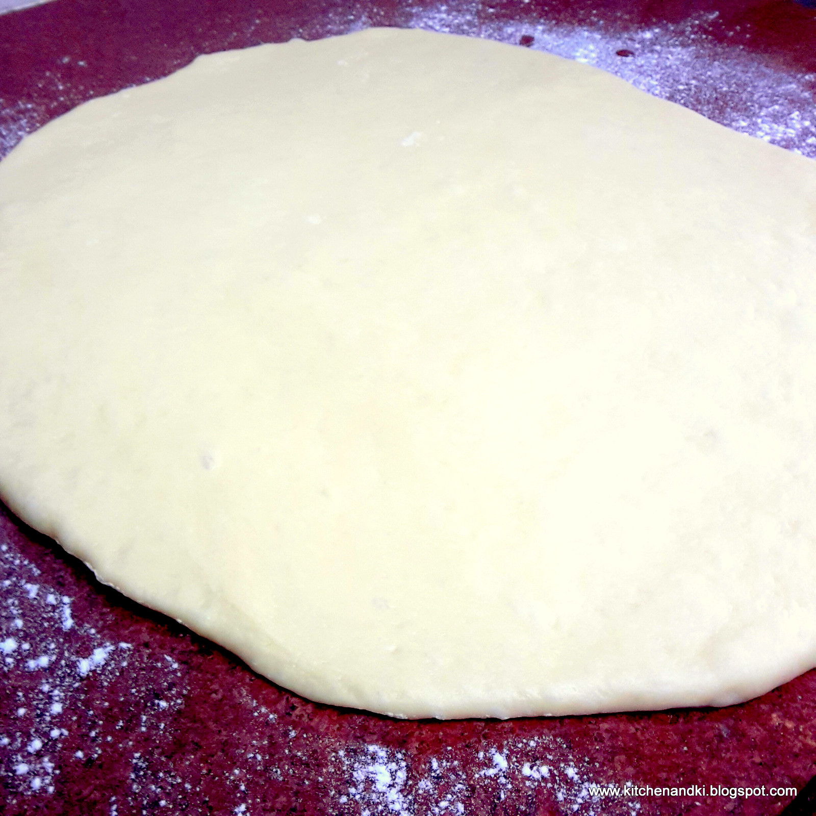 Now on a floured working surface, take the dough and start rolling it out.